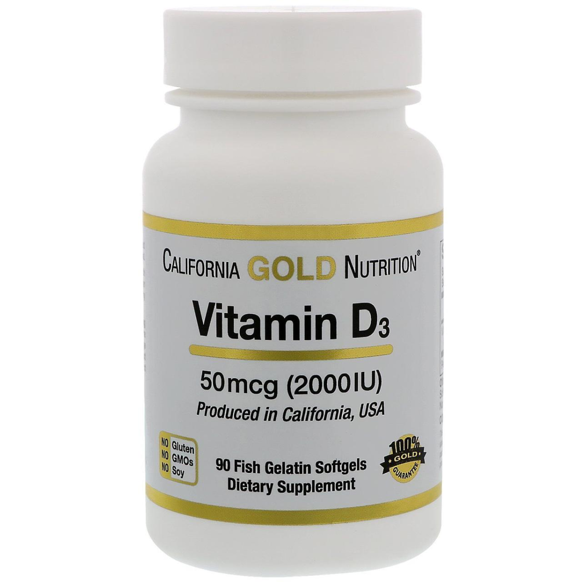 Вітамін D3, 50 мкг (2000 МО), 90 рибно-желатинових капсул California Gold