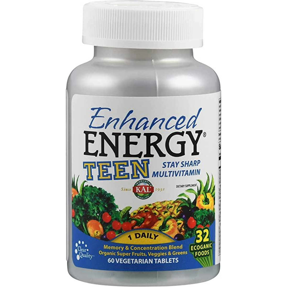 KAL, Enhanced Energy, суміш для поліпшення пам“яті та концентрації, для підлітків, 60 вегетаріанських таблеток